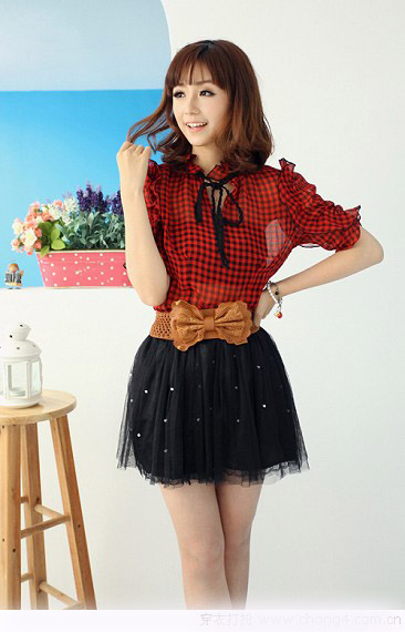 03 黑色长款棉TEE修身又显瘦,但是容易显得单调,如果在里面拼接一层色彩出挑的玫红色雪纺面料做装饰,效果可就会截然不同呢,大大的红色波点就仿佛跳跃的音符,将众人视线牢牢锁定。