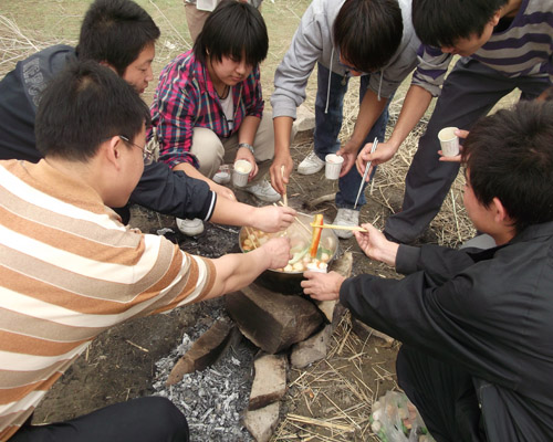 - 活动过程:班委和几个同学先抵达目的地。然后其他同学随搬东西的车骑自行车到。在弄火炉的过程中,开始还是有点棘手,不过最后还是综合意见成功开起火炉,在同学分工与合作方面还可以,那鲜美的羊肉串和火锅是我吃过的最香的,同学们一起分享着食物,乐在其中,笑在脸上,吃的过程与吃完后照相,才发现人在开心是最动人。本次活动共达四小时,而整个过程中一切准备的都很妥当。
