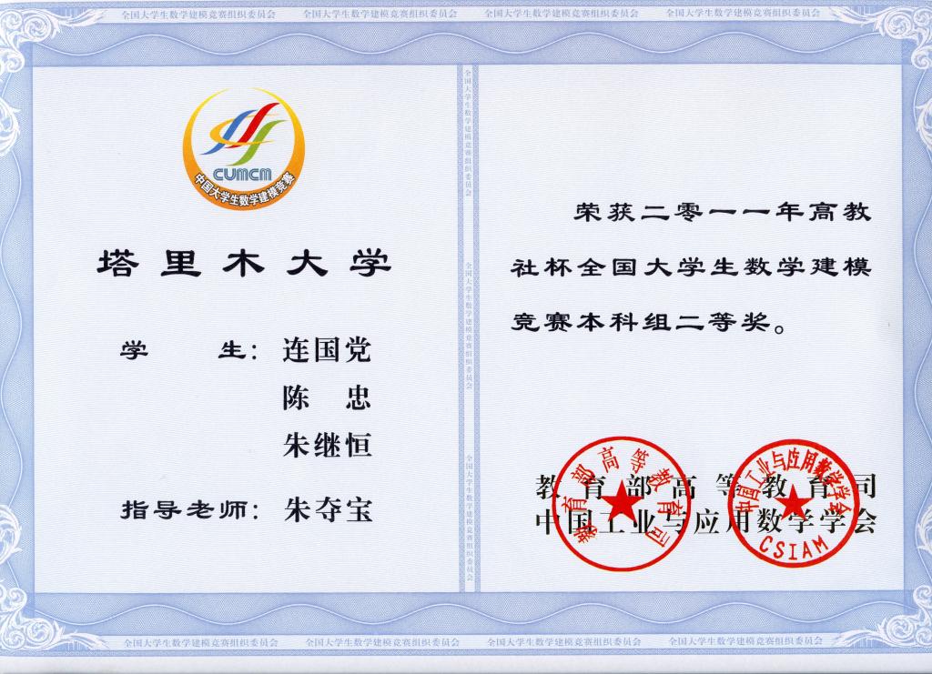 2011年朱夺宝老师被自治区教育厅评为优秀指导教师