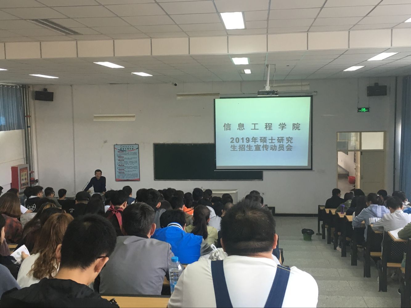 9月22日,信息工程学院2019年硕士研究生招生宣传动员会在逸夫楼阶14顺利召开。学院领导、部分导师代表、大三本科生代表参加此次大会。会议由张学东副院长主持。
