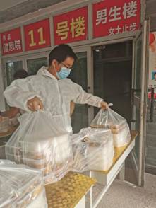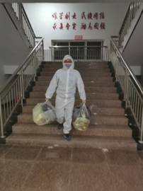 五楼楼层长张鹏程老师,在宿舍楼值班期间感冒了,嗓子哑了,鼻塞了好几天,让他媳妇给他送药。当问他为什么不告诉学院,他说:“在这种特殊时期,如果他回家休养了,他的工作就得找其他人来顶替。我不想给学院添麻烦。”