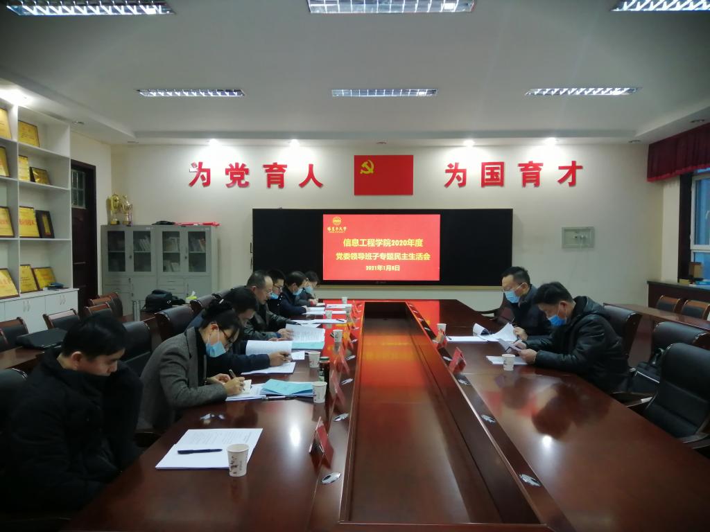 1月8日上午,信息院党委领导班子召开2020年度民主生活会,学校党委常委、组织部部长马智群,校党委组织部常务副部长张伟信,信息院党委委员参加会议。会议由学院党委书记周保平主 持,在逸夫教学楼205会议室召开。