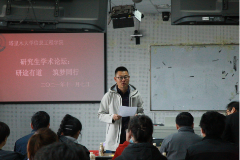 11月7号上午11:00,信息工程学院2021年研究生学术论坛在学院逸夫楼203隆重开幕。学院计算机系孟洪兵教授、施明登教授、李旭教授、部分导师、研究生党支部书记兼班主任汪慧出席论坛,学院在校研究生们到场聆听,论坛由学院副院长白铁成教授主持。
