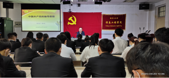 为提高入党积极分子对党的认识,增强自身党性修养。9月20日上午,学院党委书记周保平在逸夫楼203给入党积极分子上了一堂生动的党课--《中国共产党的指导思想》。