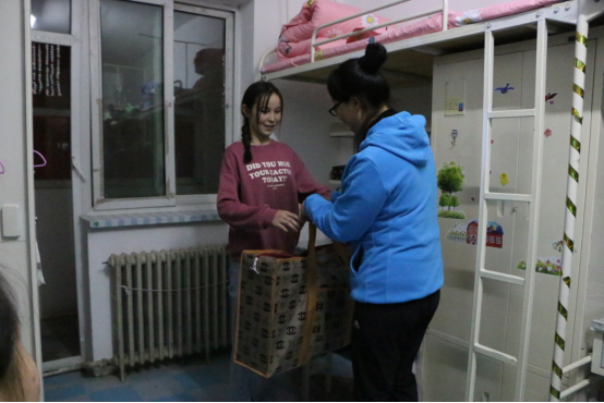 张丽娟到女生宿舍慰问小萌新并为他们送上开学大礼包,在与新生交流中,她详细地回答新生们所关注的问题,使之对学校、就业以及新疆有了更多的了解。在交谈中张丽娟进一步了解新生们初入大学的感受和学习、饮食、生活、兴趣爱好等方面的情况,确保新生们能更好地融入沙漠学府的生活。她还提醒同学们注意宿舍卫生,预防诈骗,多给家里打电话报平安,时刻保持身心健康的良好状态。