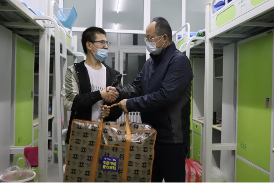 慰问中,周保平给小萌新们送去开学大礼包,并对同学们提出殷切的希望。他鼓励大家尽快转变角色,适应大学生活,努力培养独立自主的生活习惯和积极进取的学习态度,遇到困难及时和辅导员及课任老师沟通交流,愉快度过美好的大学时光。