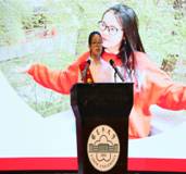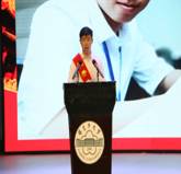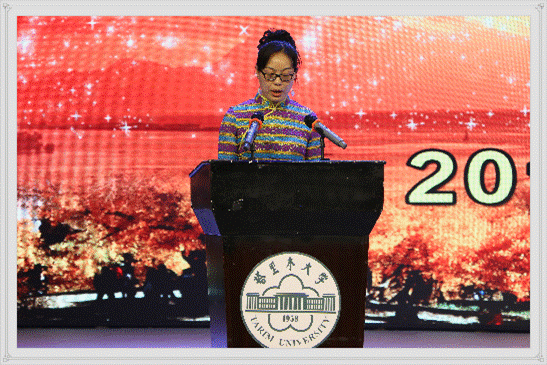 大会伊始,全体成员起立奏唱国歌。在主持人简要介绍举办本次活动的议程和意义之后,张丽娟为本次活动致辞,她希望同学们要好好听,好好记,好好学,学习优秀毕业生在生活中阳光积极、乐于奉献的品质、学习他们工作中脚踏实地、认真负责的态度,学习他们在学习上不畏艰难,战胜困难且勤奋努力的拼搏精神,学习他们努力报效祖国,为母校争光的志向;同时她还用“花有重开日,人无再少年”、“古人学问无遗力,少壮工夫老始成”激励学生珍惜韶华,增强学习紧迫感,用奋斗之笔涂抹底色,用最绚烂的青春之色描绘人生的背景,不断增强自身本领,在实现中国梦中实现自我价值和人生价值;也告诫即将走上工作岗位的同学们不要放松自我,要继续秉持奋斗的精神,用胡杨精神不断激励自我在新的征程上书写华章!接着,由学生办公室主任古翠英宣读此次优秀毕业生事迹报告会优秀毕业生代表名单,并由学院领导为优秀毕业生代表佩戴绶带。