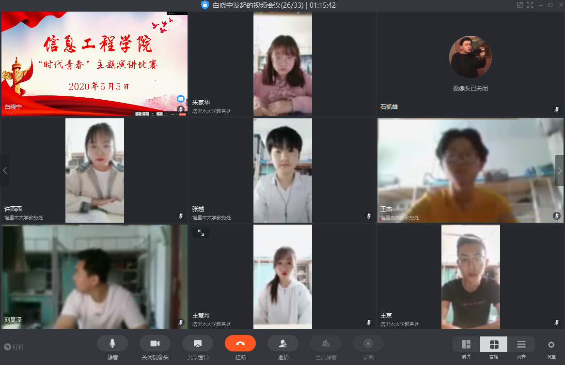 为弘扬五四精神,加强爱国主义教育,用声音传递正能量,为抗击疫情贡献我们的青春力量,5月5日,信息院通过钉钉在线上举办“时代青春”演讲比赛。