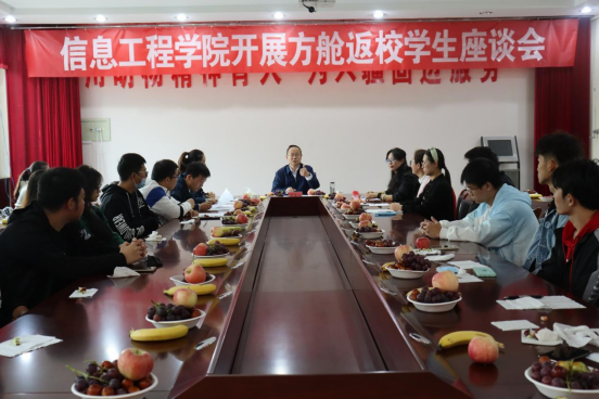 10月9日上午11:00,信息工程学院组织开展方舱返校学生座谈会。学院党委书记周保平,党委副书记、纪委书记张丽娟,学生办公室副主任潘洋洋,团委副书记潘莎莎以及50名师生参加座谈会。