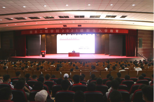 图一新生在行政楼报告厅参加入学教育