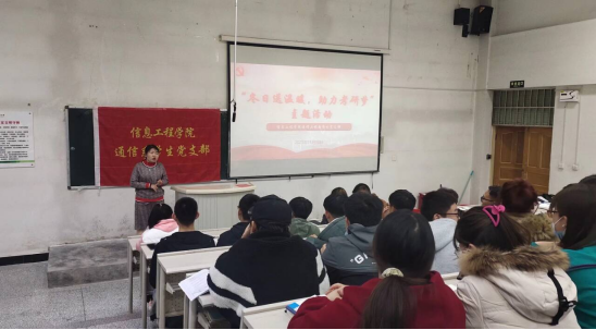 2021年11月10日下午,信息院通信系学生党支部于逸夫楼阶教7组织开展“冬日送温暖,助力考研梦”活动。此次活动为40名考研学子加油鼓励,支部书记古翠英出席,李仲煊主持,支部全体成员参与。