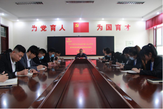 会议上,周保平带领大学共同学习习近平总书记在中国人民大学考察时的重要讲话和重要指示精神,中国青年要坚定不移听党话、跟党走,努力成长为堪当民族复兴重任的时代新人。希望广大青年用脚步丈量祖国大地,用眼睛发现中国精神,用耳朵倾听人民呼声,用内心感应时代脉搏,把对祖国血浓于水、与人民同呼吸共命运的情感贯穿学业全过程、融汇在事业追求中。