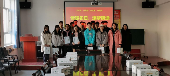 在考研冲刺阶段,王星原希望各位同学端正心态,劳逸结合,调整作息,一鼓作气,努力交出一份让自己满意的考研答卷。宣传委员冉家乐与同学们分享自己实习的经验,并鼓励同学们一定要坚持下去,为自己的人生做好长远规划。最后,支部给每人都送去了饱含组织浓浓关怀的考研大礼包。在寒冷的冬天,支部的问候,暖心的关怀,贴心的慰问礼品,让备战考研的学子真切感受到了细致关怀与殷切期望。