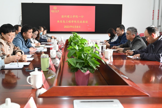 5月8日下午,温州理工学院教务处处长连新泽,数据科学与人工智能学院副院长王贤明,数据科学与人工智能学院公共教学部主任廖雪峰一行来学院学习交流C语言课程,与我校教务处副处长朱天生,信息工程学院副院长邬欢欢,信息工程学院计算机系总支书记劳东青,多位C语言程序设计授课教师进行深入学习交流。