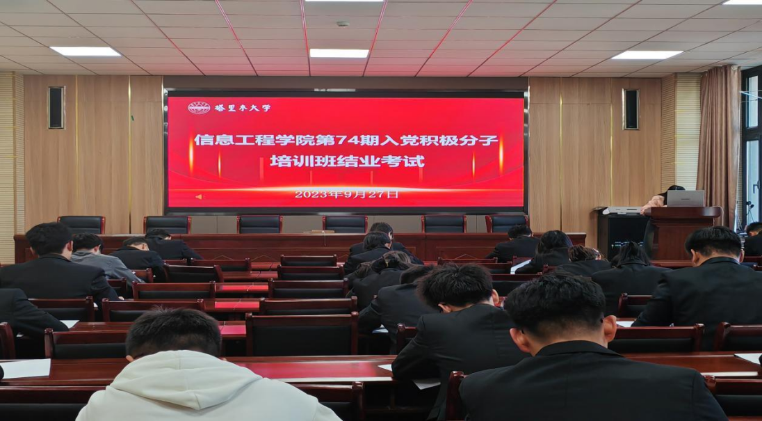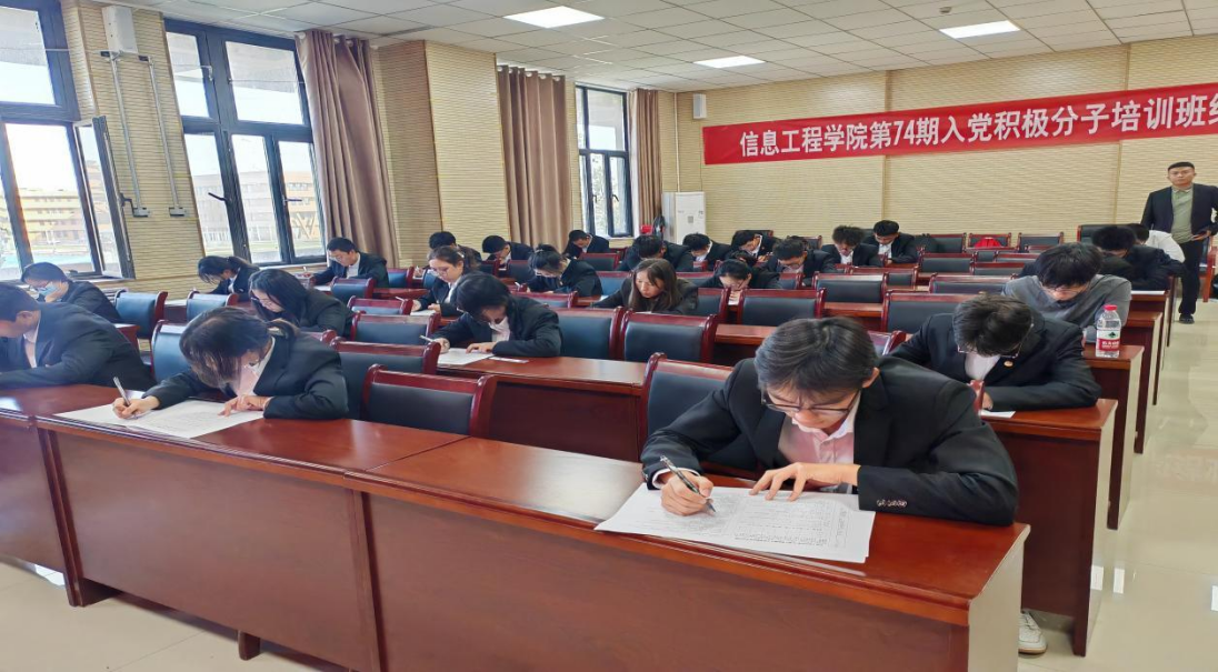 9月27日,信息工程学院在信息综合楼A202等教室组织第74期入党积极分子培训班学员进行入党积极分子培训班结业考试,党建办主任古翠英进行巡考、学生党支部书记等人作为监考老师负责监考。