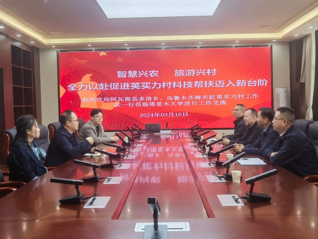 3月16日上午,阿瓦提县多浪乡党委刘新玉书记、乌鲁木齐海关驻英买力村工作队第一书记杜艳启和阿拉尔市市场监督管理局驻英买力村工作队第一书记文伟一行6人来塔里木大学信息工程学院访问,与塔里木大学环塔电商国家级星创天地团队就智慧兴农、文旅兴村进行工作交流、实地调研。