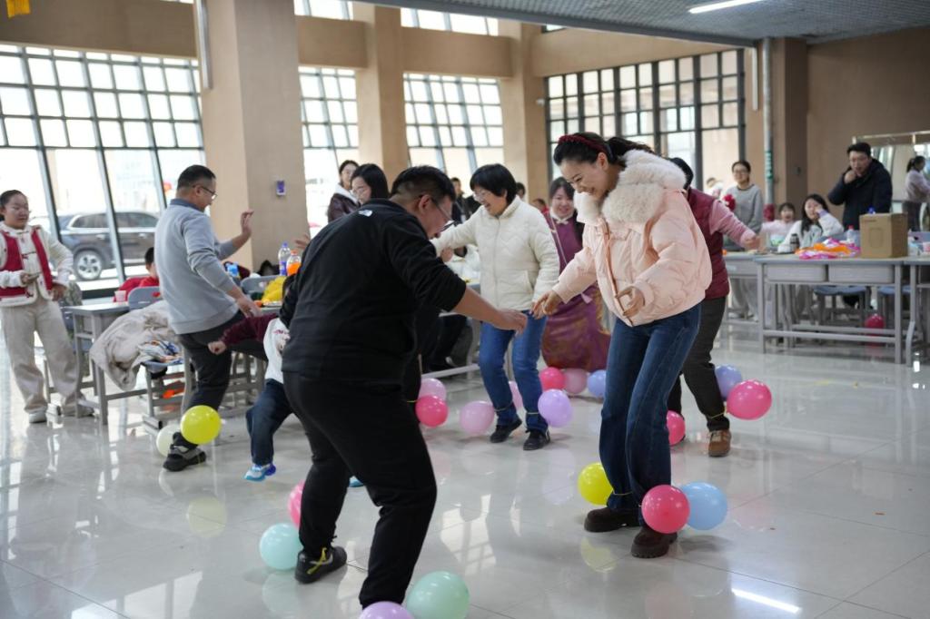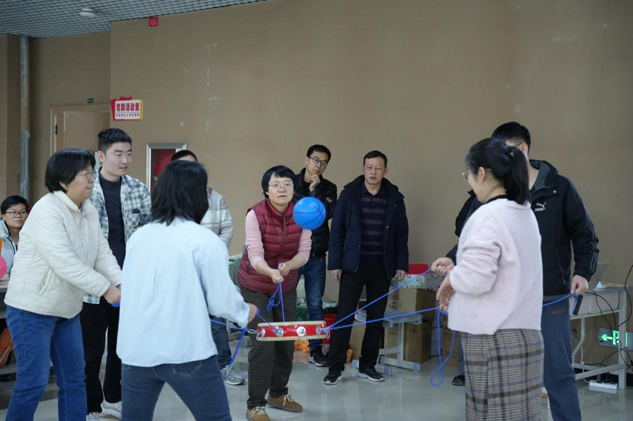 活动在学院党委书记朱夺宝的亲切致辞中拉开帷幕,书记向全体教职工的辛勤付出表示衷心感谢,并寄语大家在新的一年里继续携手并肩、锐意进取,为学院高质量发展贡献更大力量。随后,趣味活动环节更是精彩纷呈,“沙包投准”“同心鼓”“踩气球大乱战”等项目既考验个人技巧,又彰显团队协作,教职工们踊跃参与,欢声笑语充满整个大厅。
