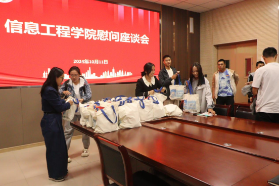 潘莎莎表示,学院始终是学生们最坚实的后盾,无论在学习还是生活中,只要学生们遇到困难,都可以随时主动向老师求助,学院将全力以赴、不遗余力地为学生们排忧解难。希望大家勇于面对挑战,勇于克服困难,不断追求卓越,提升自我综合素质。最后,老师们向与会学生分发慰问品,勉励同学们要珍惜在校时光,努力学习,不负韶华。